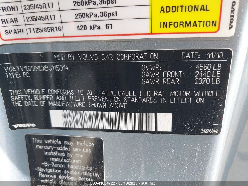 2011 VOLVO C70 2011 Gasoline, 2.5, Front wheel drive, VIN - YV1672MCXBJ****** from the USA