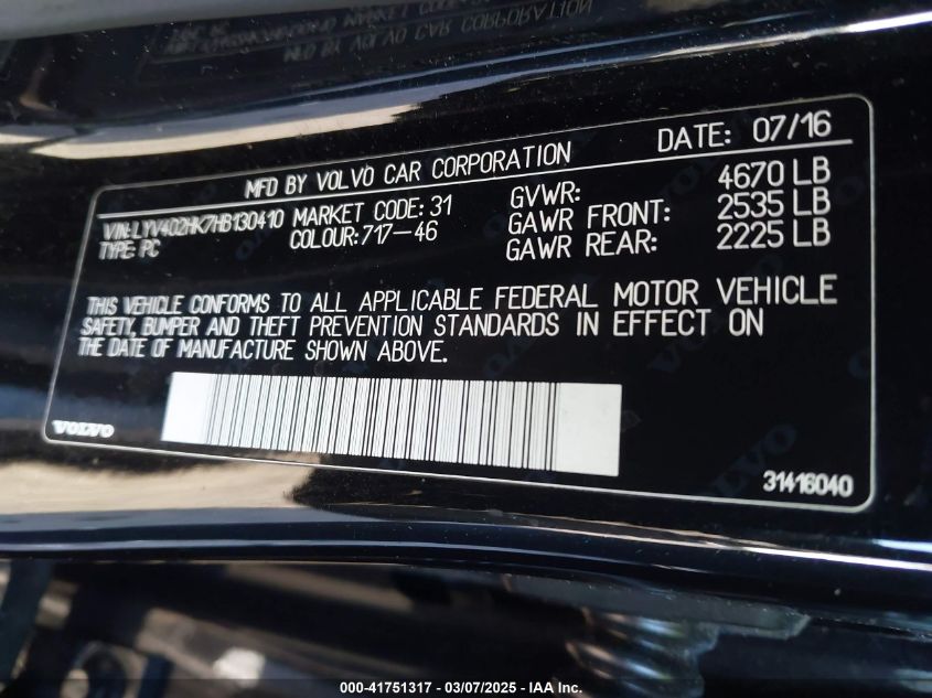 2017 VOLVO S60 2017 Gasoline, 2.0, Front wheel drive, VIN - LYV402HK7HB****** from the USA