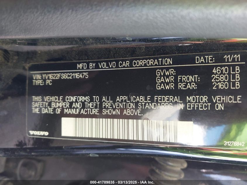 Color BlackCylinders 5Drive Front wheel driveVIN YV1622FS6C2******State Run & Drive VerifiedDamage It is unknown AutoRIA