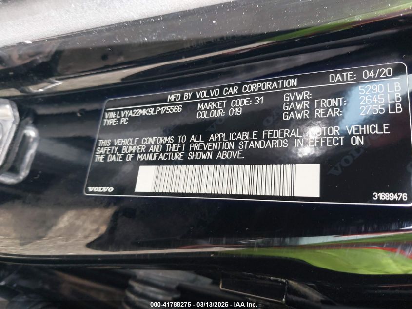 Color BlackCylinders 4Drive Full driveVIN LVYA22MK9LP******State Run & Drive VerifiedDamage Front right AutoRIA