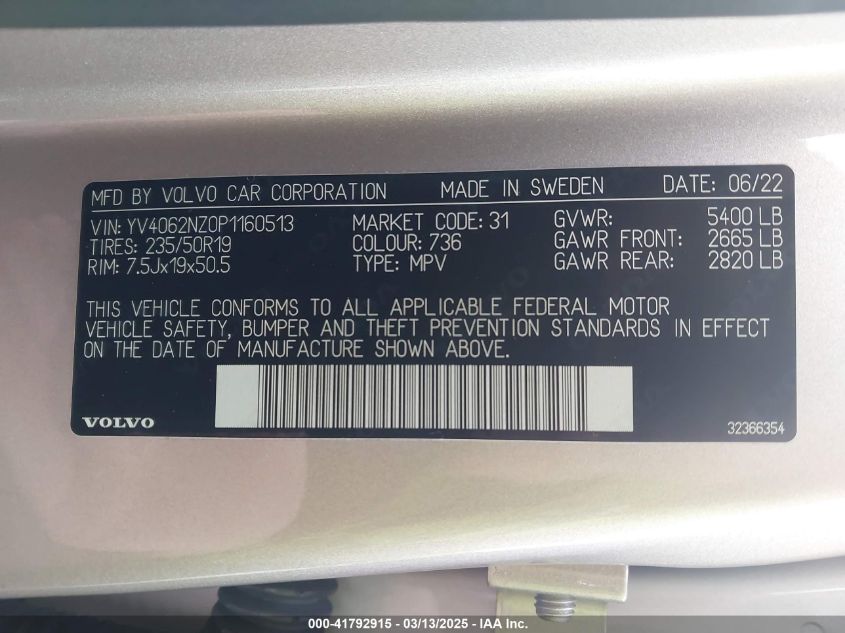 Color SilverCylinders 4Drive Full driveVIN YV4062NZ0P1******State Run & Drive VerifiedDamage Water
