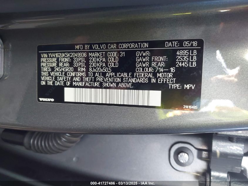 2019 VOLVO XC40 2019 Gasoline, 2.0, Full drive, VIN - YV4162UK5K2****** from the USA