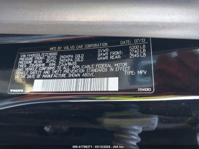 Color BlackCylinders 6Drive Front wheel driveVIN YV4952DL7E2******State Run & Drive VerifiedDamage InsignificantAuction date 2025-03-20 AutoRIA