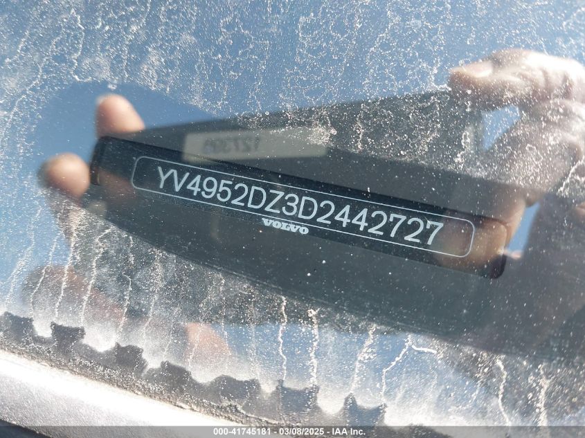 Color GrayCylinders 6Drive Full driveVIN YV4952DZ3D2******State Run & Drive VerifiedDamage Front rightAuction date 2025-03-20 AutoRIA