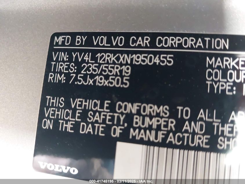Color SilverCylinders 4Drive Full driveVIN YV4L12RKXN1******State Run & Drive VerifiedDamage Front or back AutoRIA