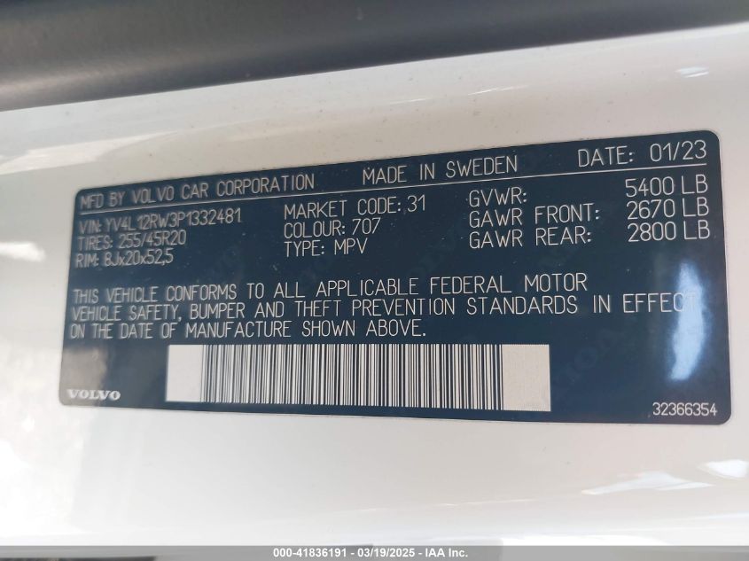 Color WhiteCylinders 4Drive Full driveVIN YV4L12RW3P1******State Run & Drive VerifiedDamage Front right AutoRIA