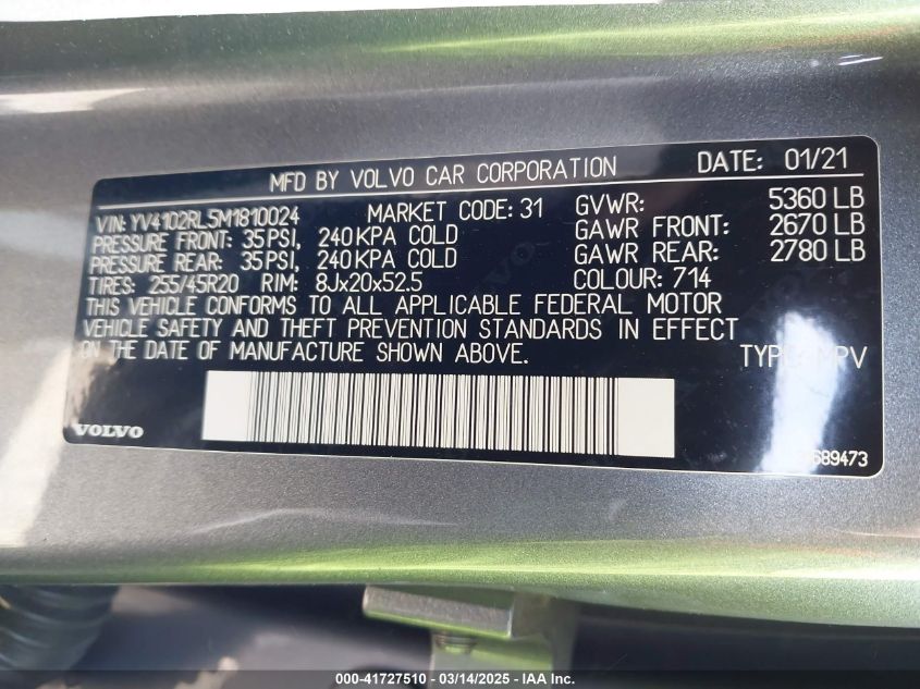 Color GrayCylinders 4Drive Full driveVIN YV4102RL5M1******State Run & Drive VerifiedDamage Front or back AutoRIA