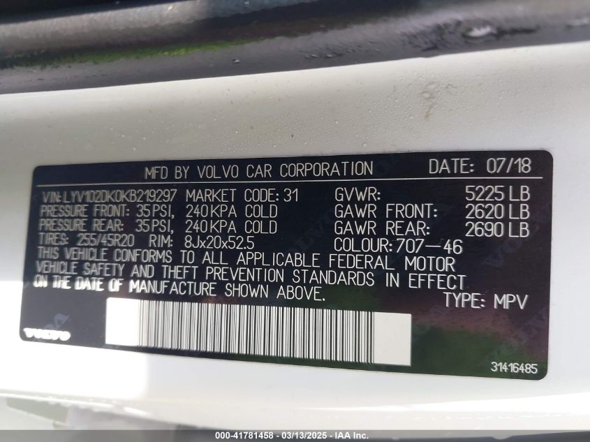 2019 VOLVO XC60 2019 Gasoline, 2.0, Front wheel drive, VIN - LYV102DK0KB****** from the USA