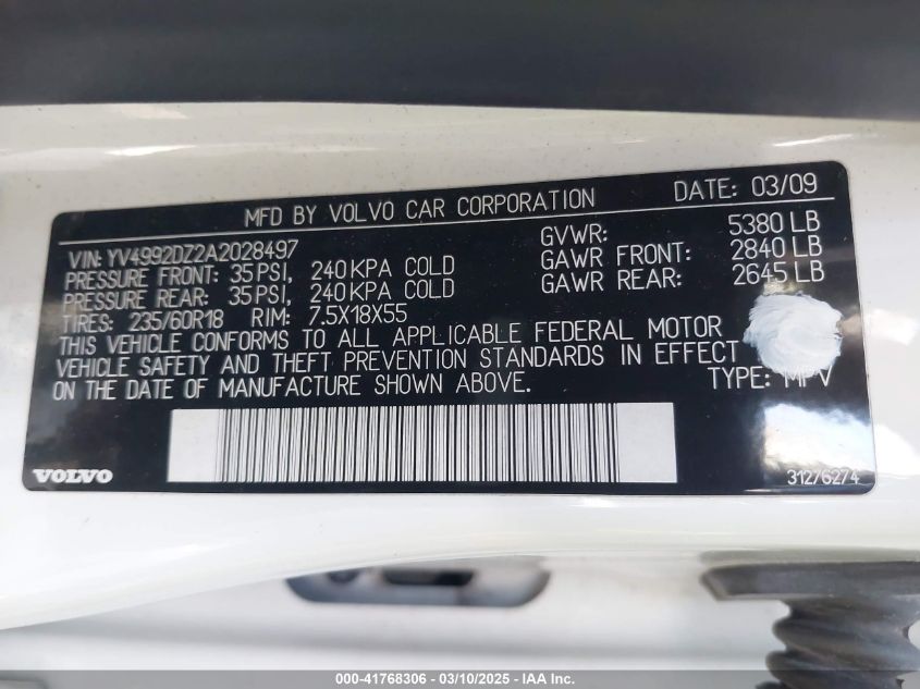 Color WhiteCylinders 6Drive Full driveVIN YV4992DZ2A2******State Run & Drive VerifiedDamage Front or backAuction date 2025-03-26 AutoRIA