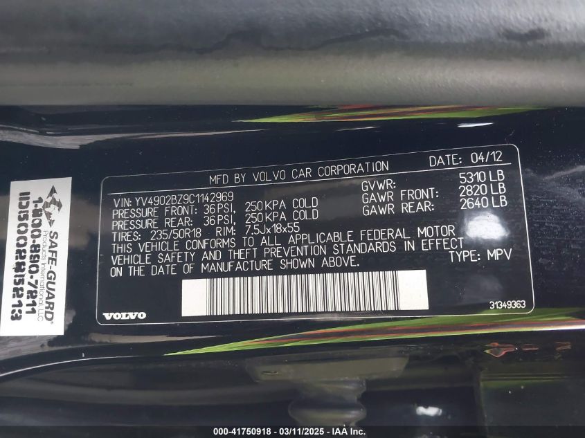 Color BlackCylinders 6Drive Full driveVIN YV4902BZ9C1******State Run & Drive VerifiedDamage Right side AutoRIA