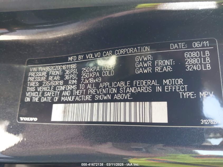 2012 VOLVO XC90 2012 Gasoline, 3.2, Full drive, VIN - YV4952CZ0C1****** from the USA