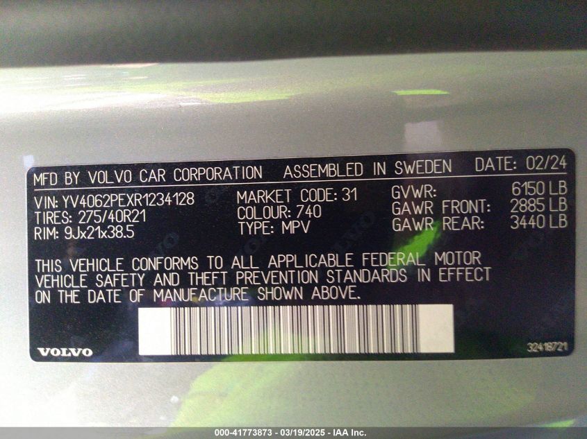 2024 VOLVO XC90 2024 Gasoline, 2.0, Full drive, VIN - YV4062PEXR1****** from the USA