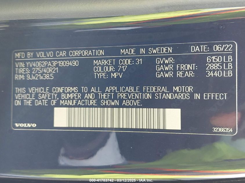 2023 VOLVO XC90 2023 Gasoline, 2.0, Full drive, VIN - YV4062PA3P1****** from the USA