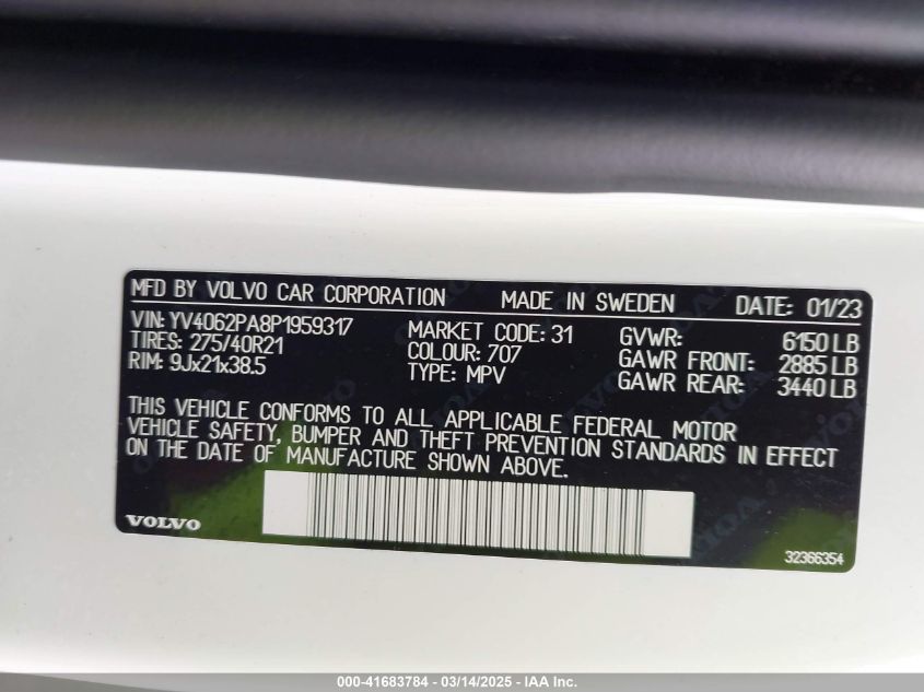 2023 VOLVO XC90 2023 Gasoline, 2.0, Full drive, VIN - YV4062PA8P1****** from the USA