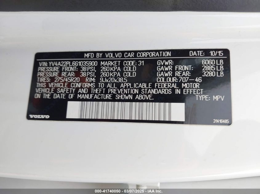 2016 VOLVO XC90 2016 Gasoline, 2.0, Full drive, VIN - YV4A22PL6G1****** from the USA