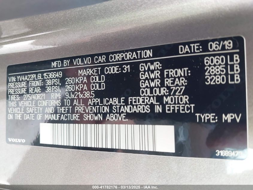 2020 VOLVO XC90 2020 Gasoline, 2.0, Full drive, VIN - YV4A22PL6L1****** from the USA